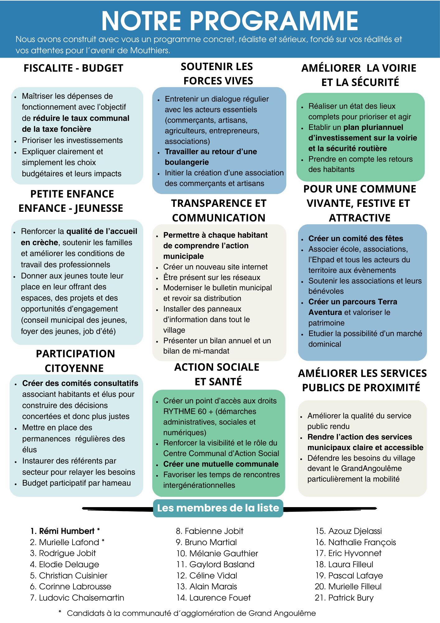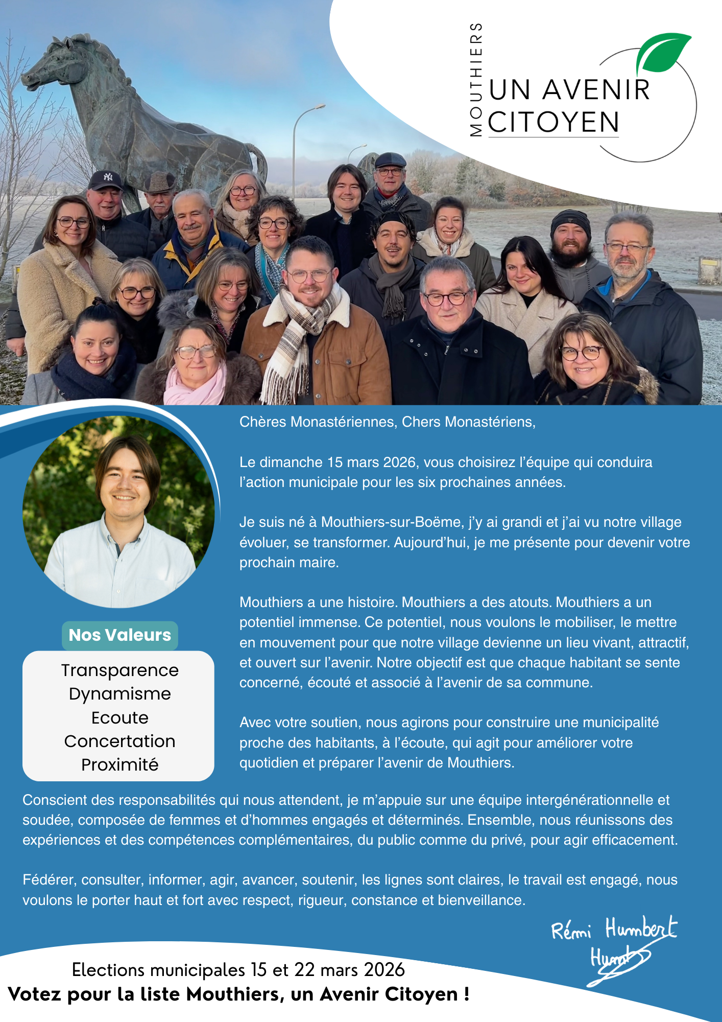La profession de foi de la liste Mouthiers, un Avenir Citoyen est désormais disponible.